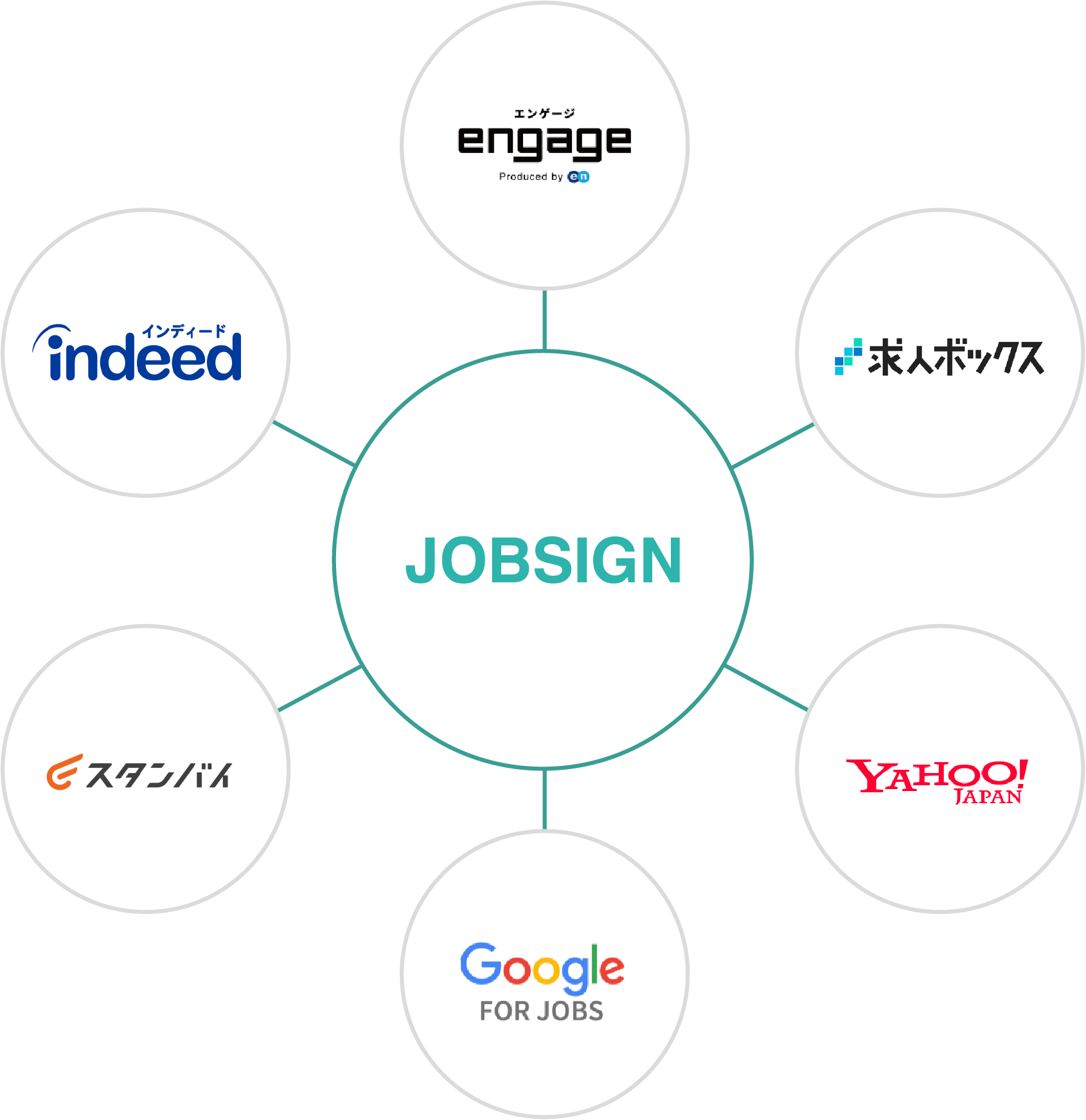 作成いただいた求人情報は、自動で複数の求人メディアに掲載。各媒体への個別対応や登録作業は不要です。